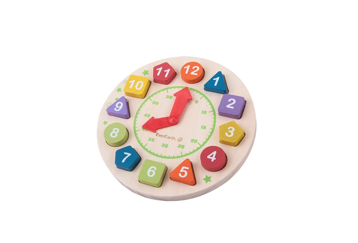 Mit der Kinderuhr aus Holz von EverEarth kannst du deinen Kindern problemlos das Uhrenlesen beibringen.
