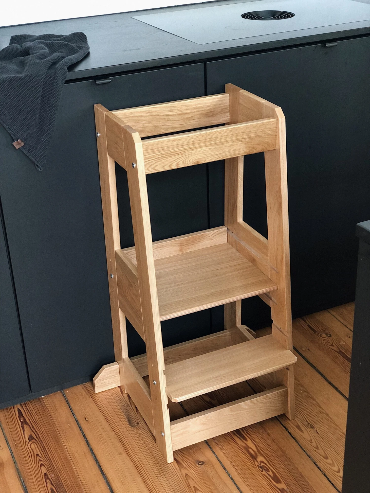 Der Entdeckerturm von tiSsi® hebt Ihr Kind auf die optimale Position an. Dieser wurde so konzipiert, dass Ihr Kind näher beim Arbeiten in der Küche oder am Tisch dabei sein kann und so schon früh soziale Interaktionen mitbekommt und von Ihnen lernen kann.
